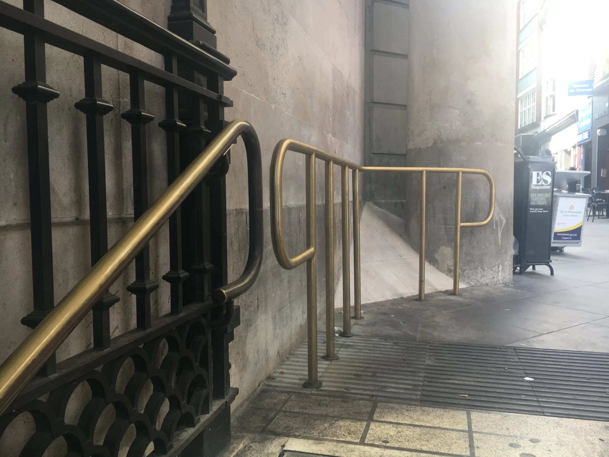 We were commissioned by the Crown Estate to produce a new brass handrail for the Glasshouse Street entrance to Piccadilly Circus Underground station. The brief was to create an exact replica of an existing handrail on the other side of the walkway.