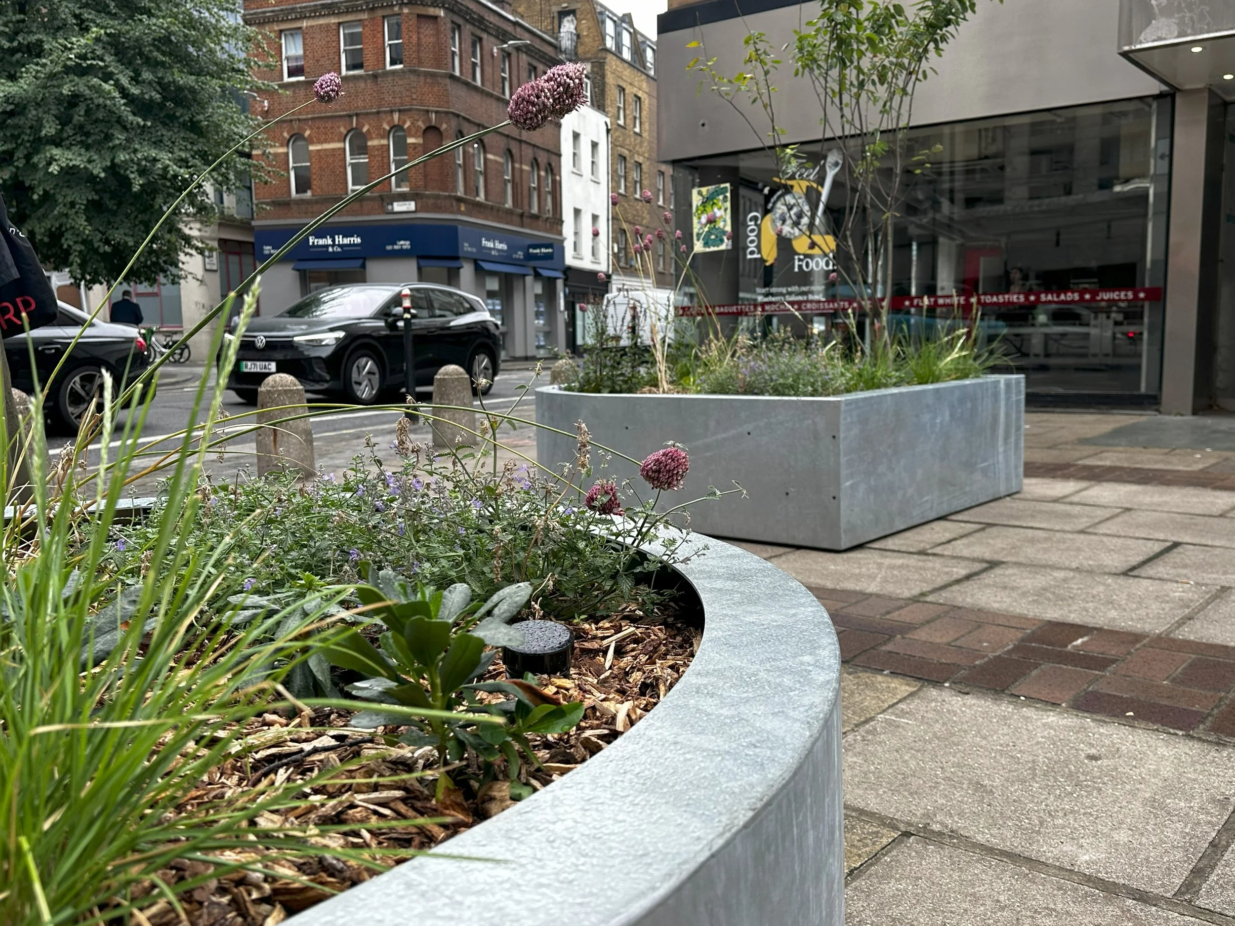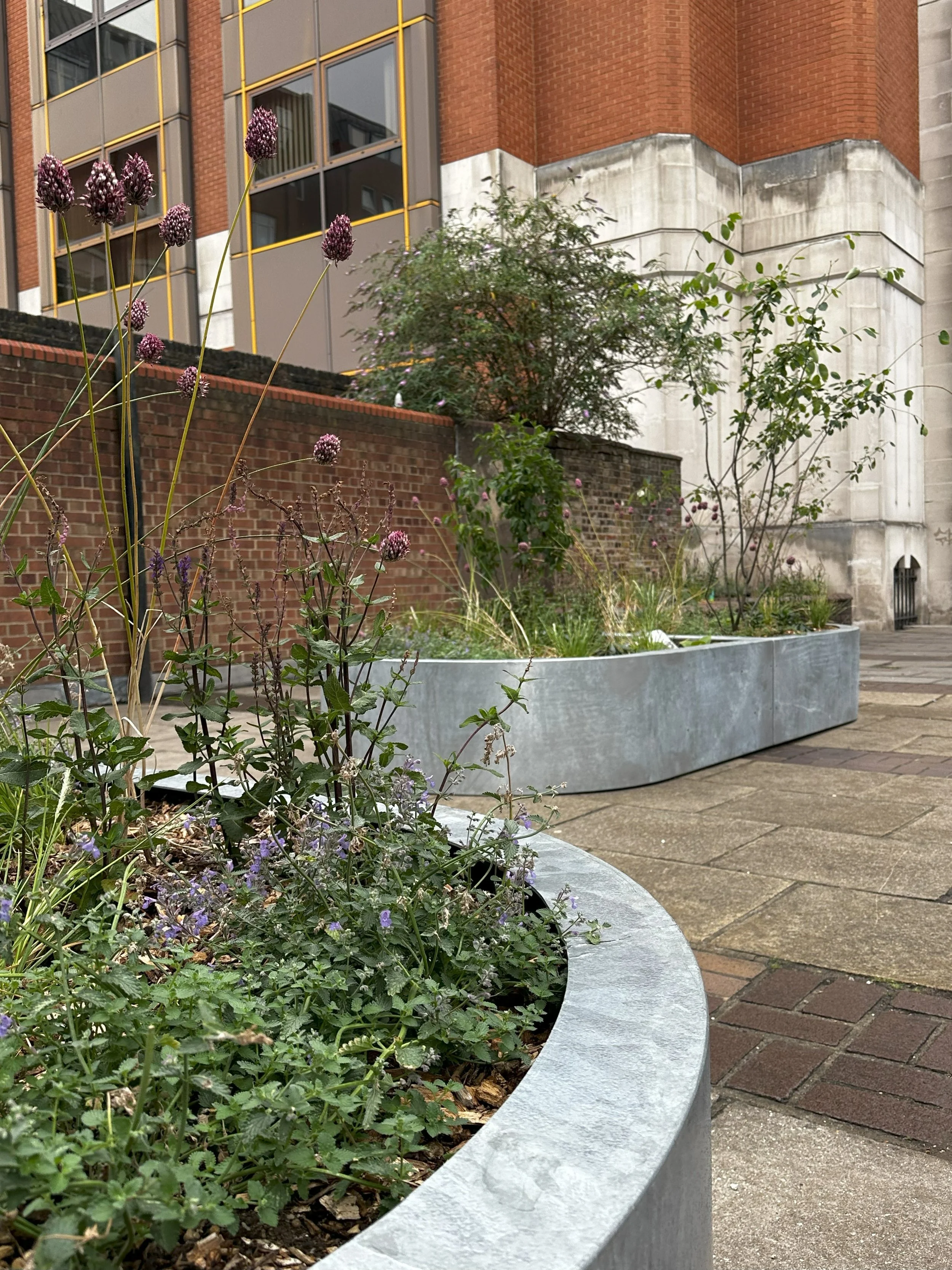 Working with landscape architects Publica, we were commissioned to produce this series of large scale planters for this public space within the City of London close to the Barbican Centre.