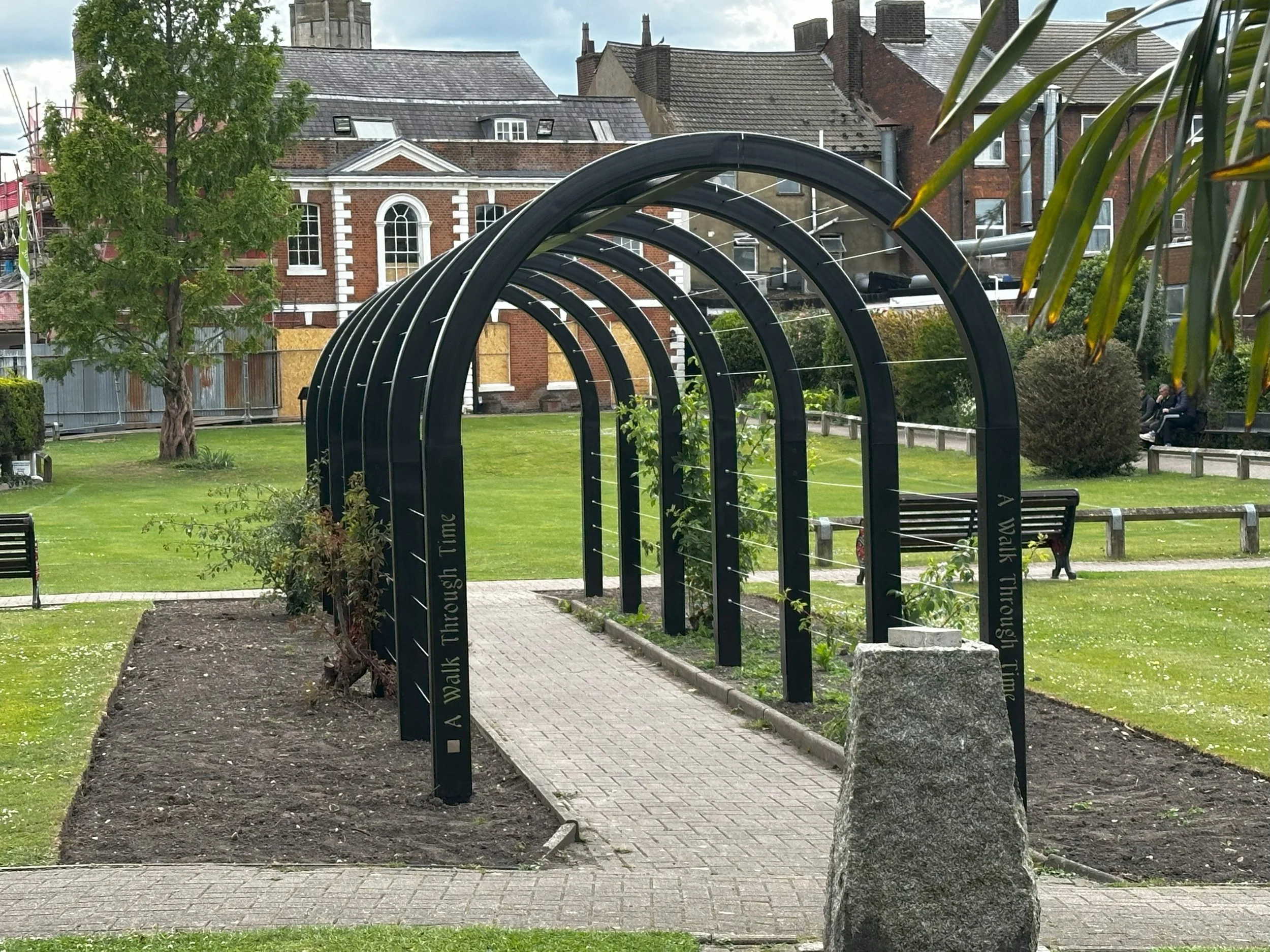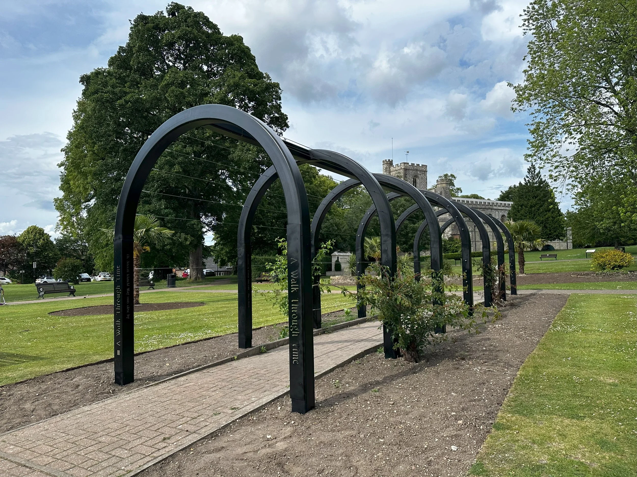 Working closely with the team of the local town council, we were commissioned to develop the design of this bespoke pergola celebrating 1,000 years since the foundation of the Priory in Dunstable.