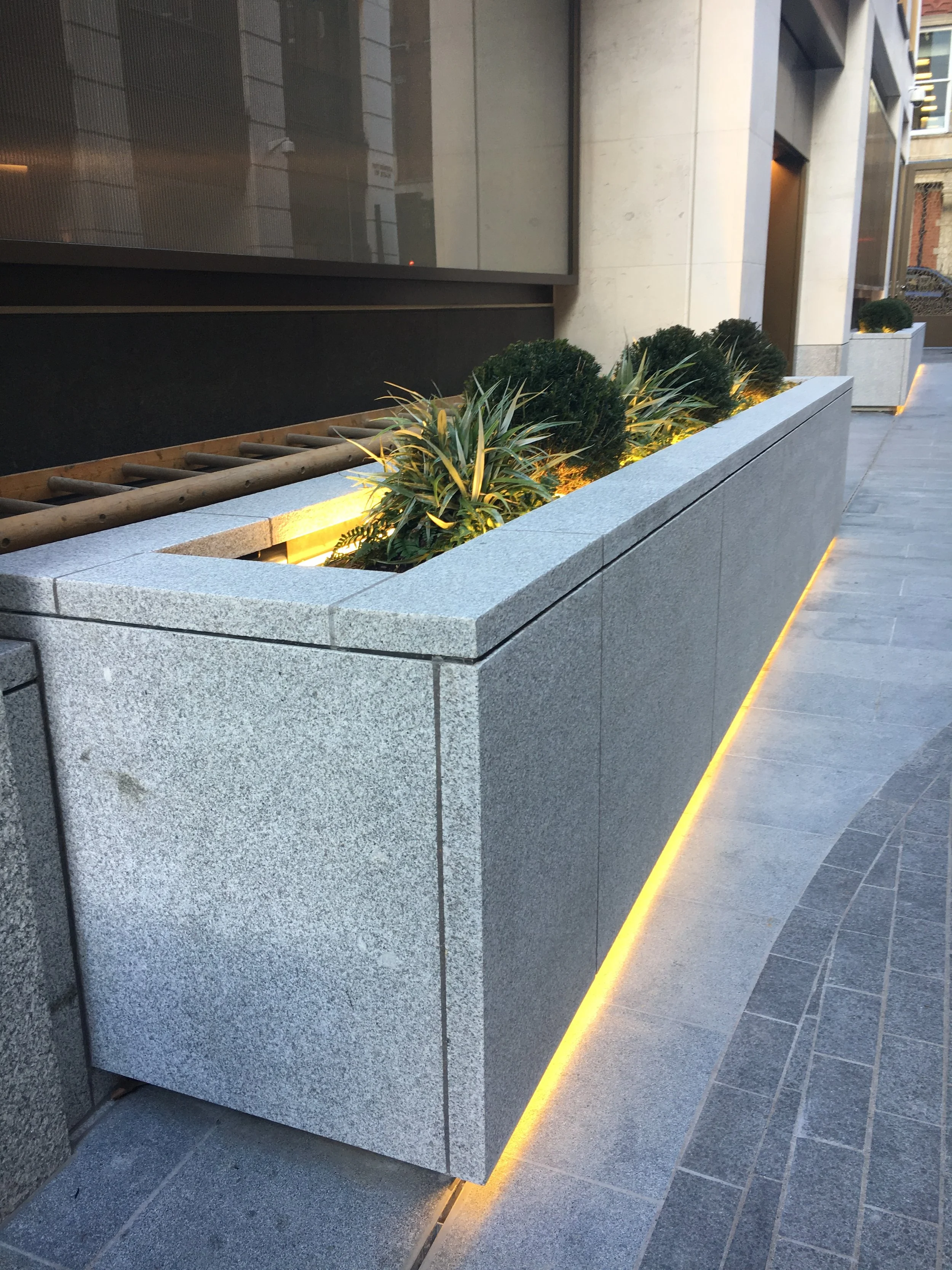 Clarges is a multi-million-pound ‘super prime’ residential and commercial development in London’s Mayfair, comprising 34 luxury apartments overlooking Green Park and Buckingham Palace. The main contractor, international engineering and construction giant Laing O’Rourke, commissioned us to work with its specialist stonework subsidiary, Vetter UK, to create a set of outdoor planters, each 5m long and extremely heavy, for a mews area within the project.