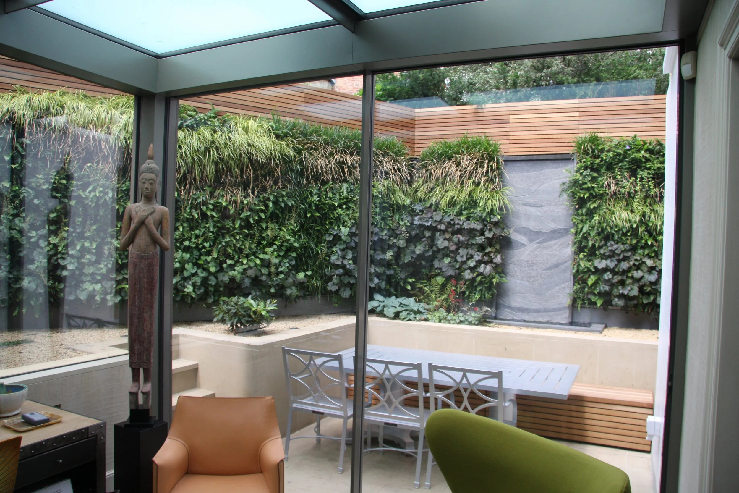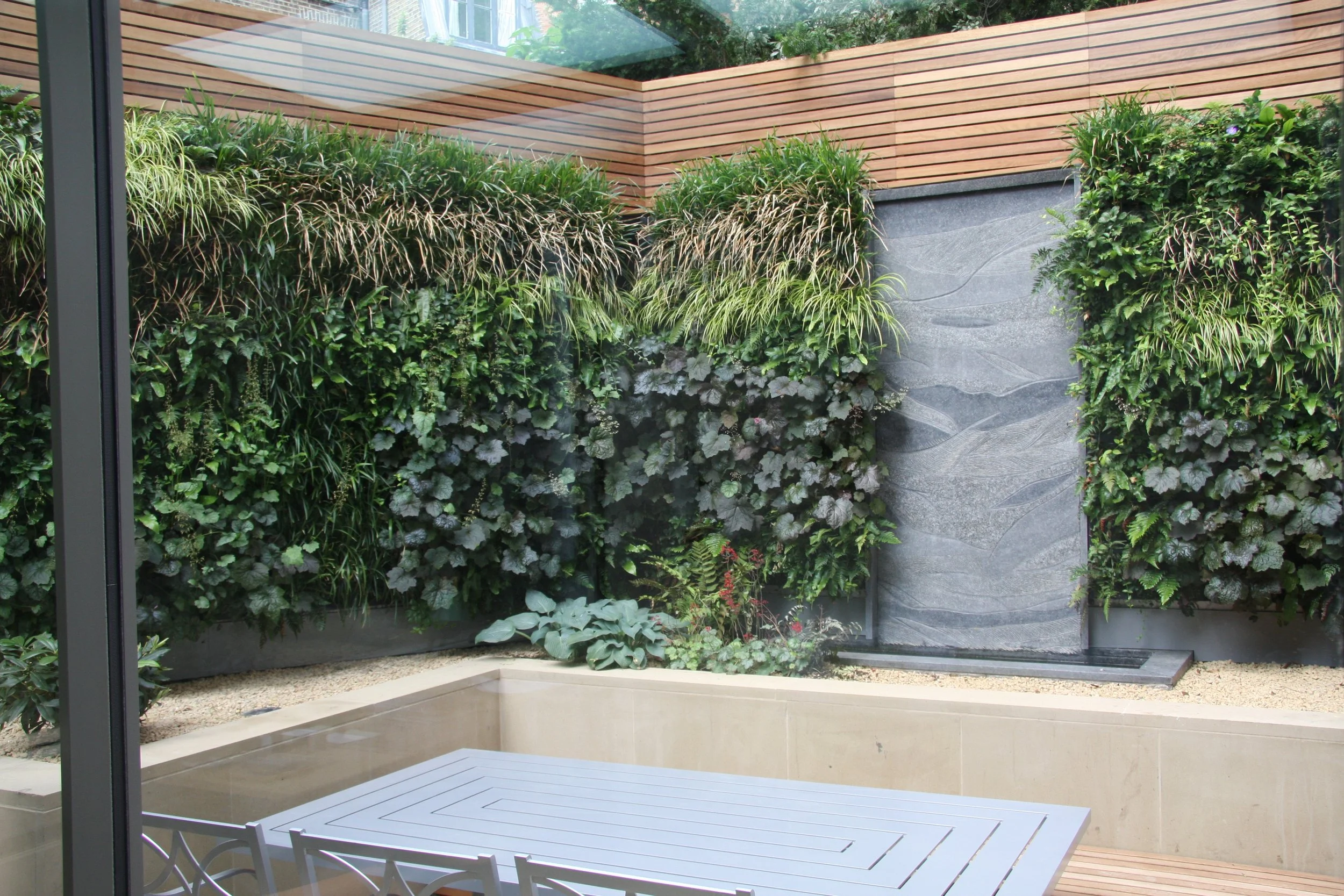 The design of this beautiful Living Wall was both striking and unique. An 8-way party wall around the boundary meant the system had to be completely free standing with no contact with the surrounding structures. To achieve this an elaborate framing system was developed supplied as a kit of parts for simple installation.