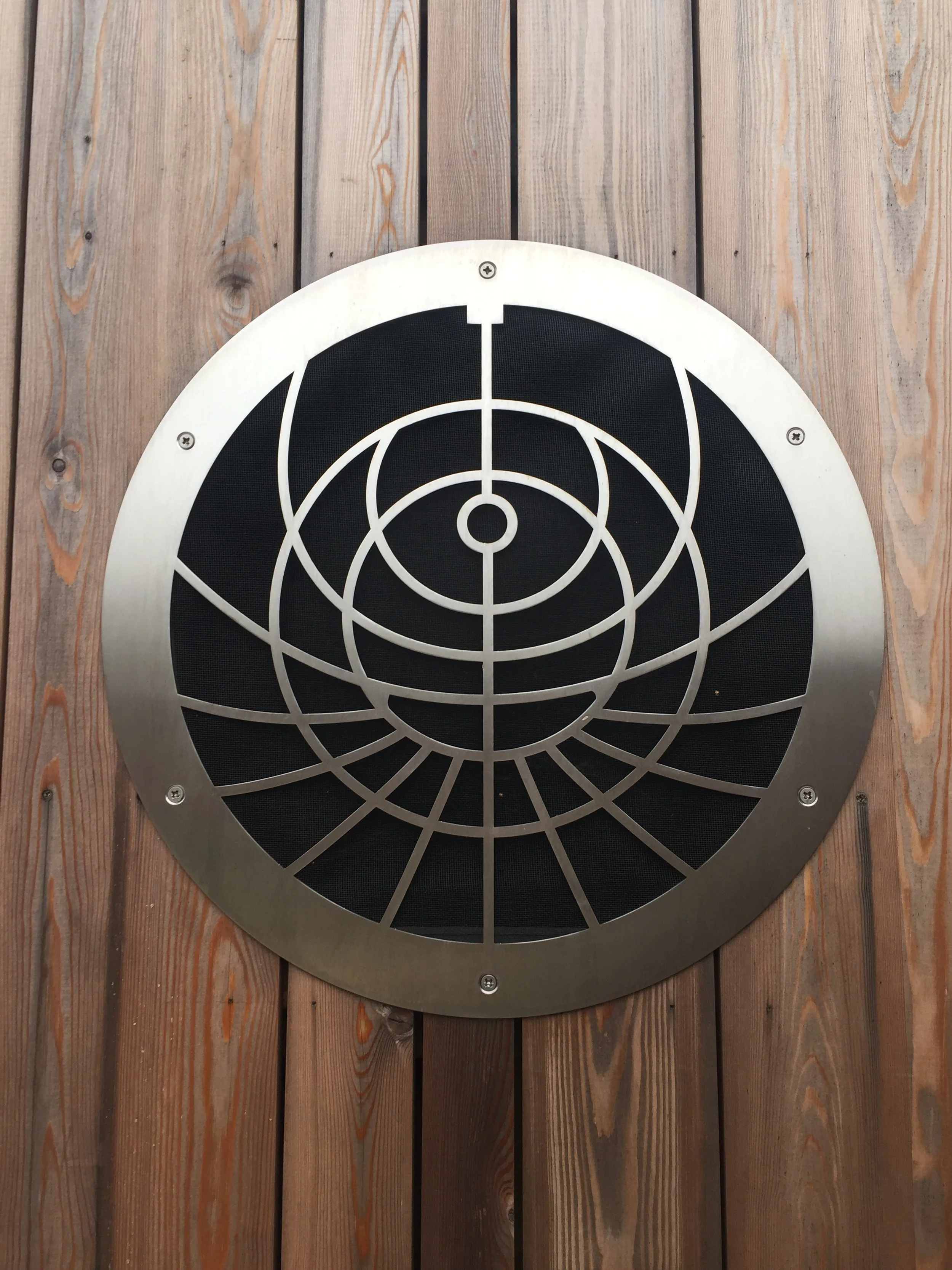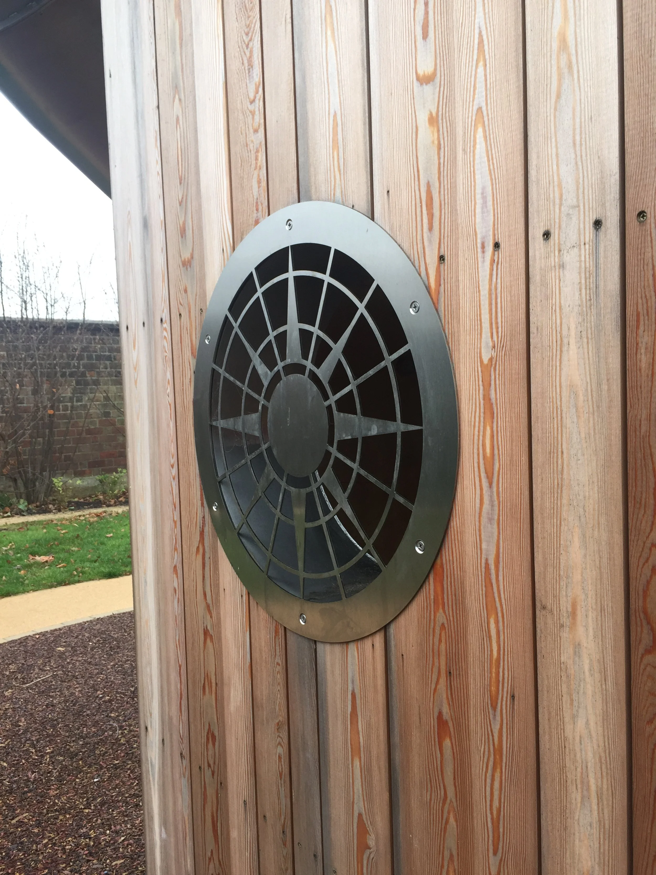 A set of intricate covers, laser-cut in stainless steel, designed and made for porthole windows in a new attraction in the gardens of the world-famous Hampton Court Palace.