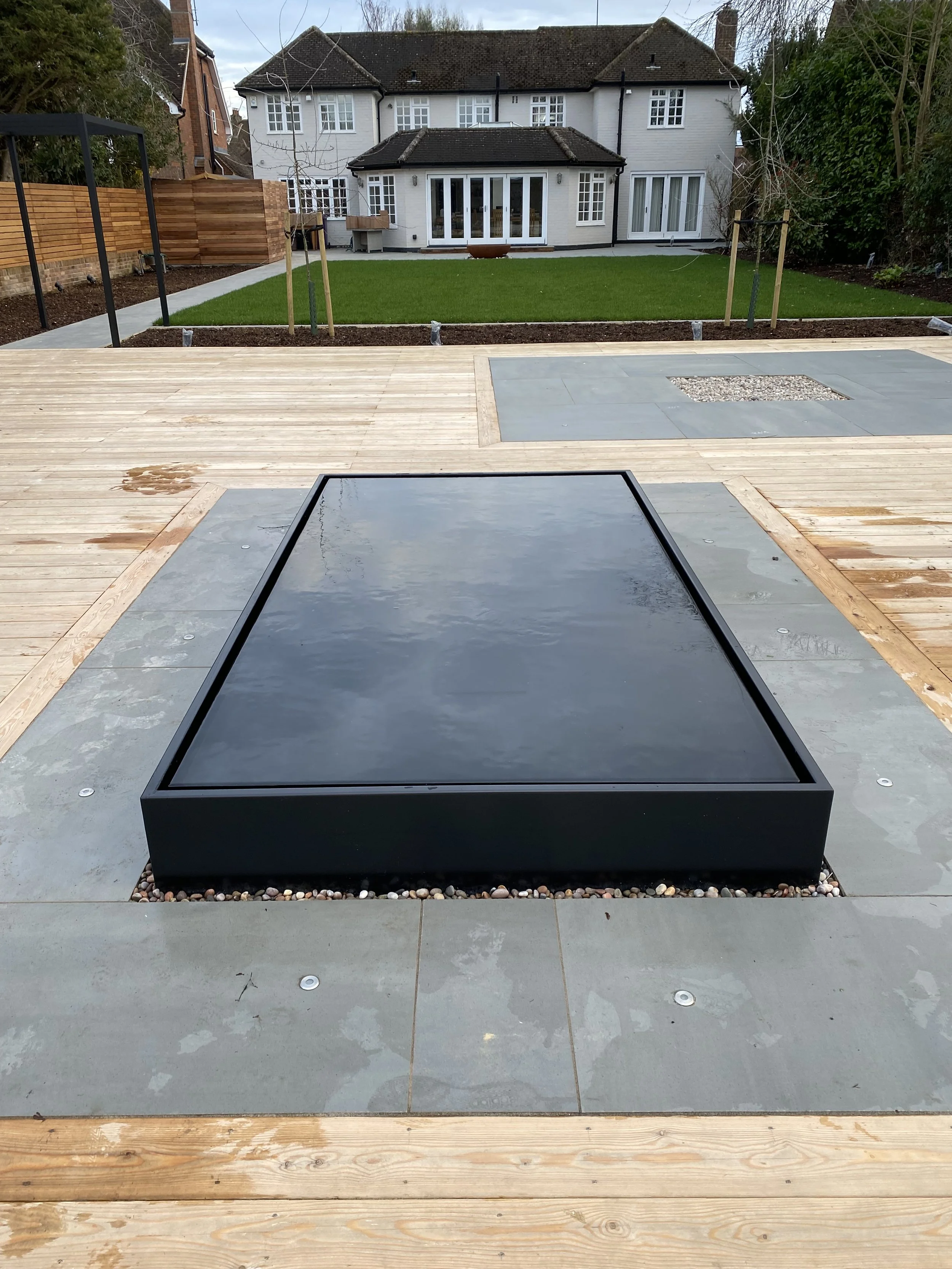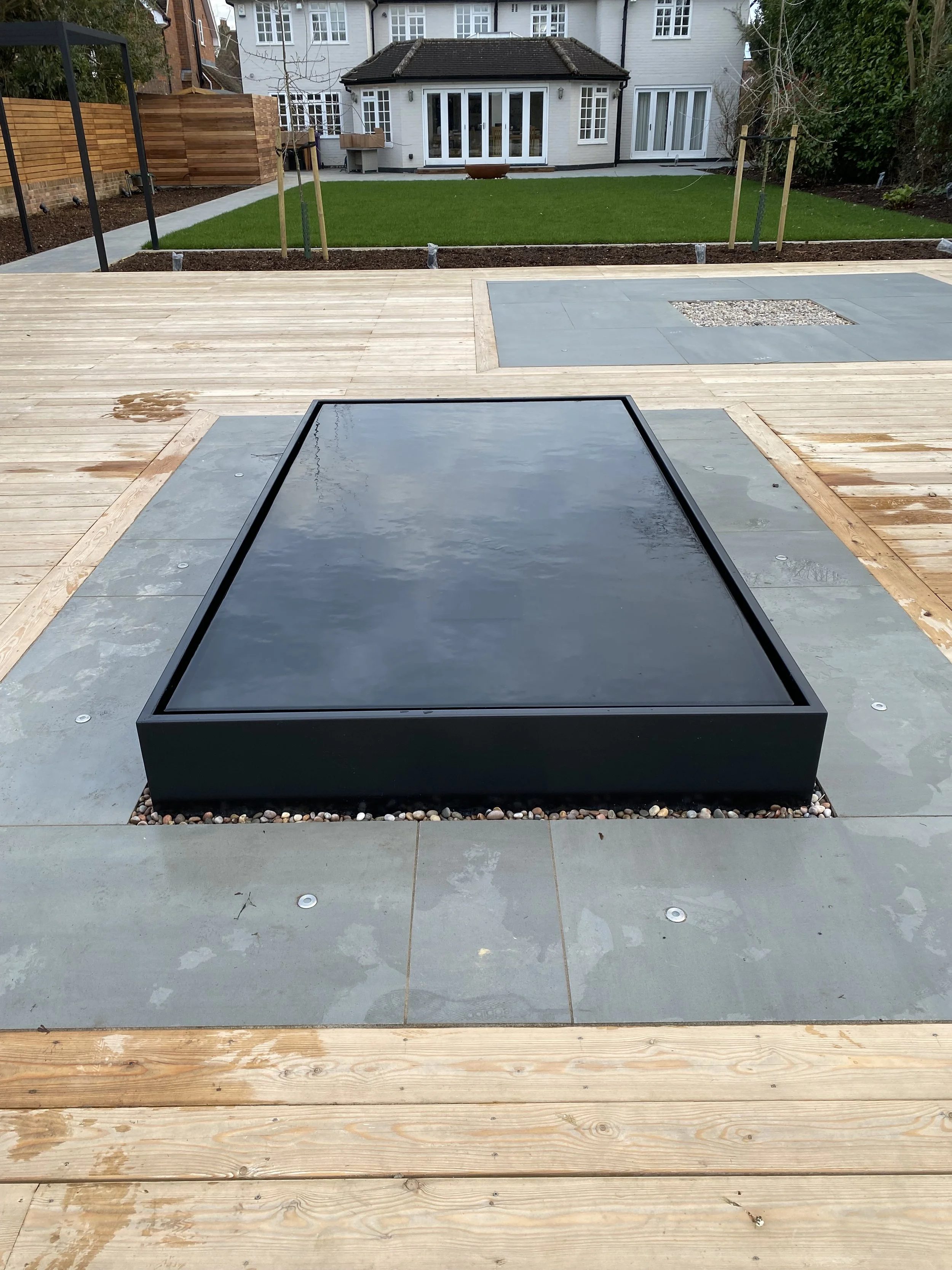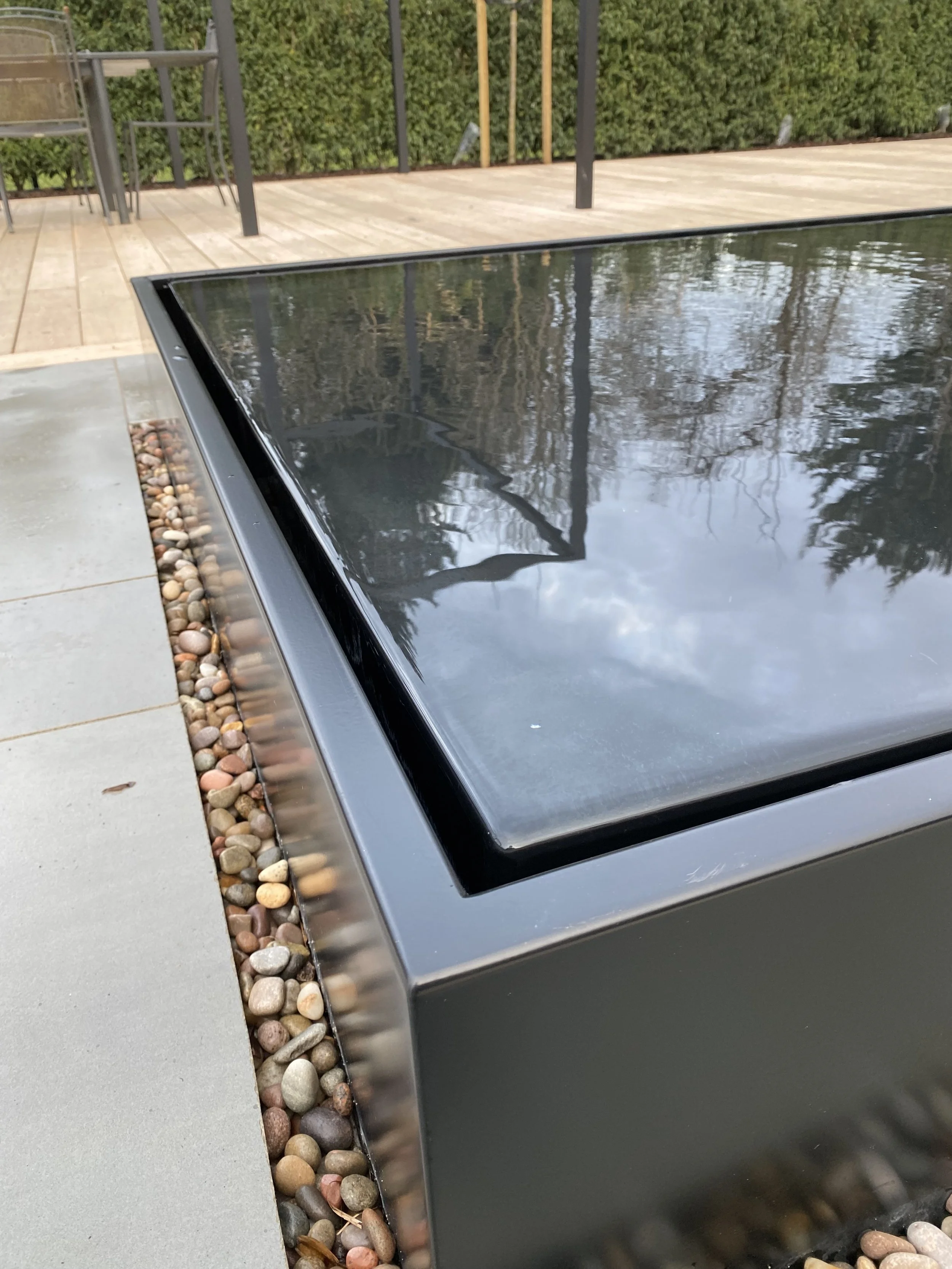 A collaboration with Green Tree Garden Design for a bespoke infinity water feature for a private residence in St Albans, Hertfordshire.