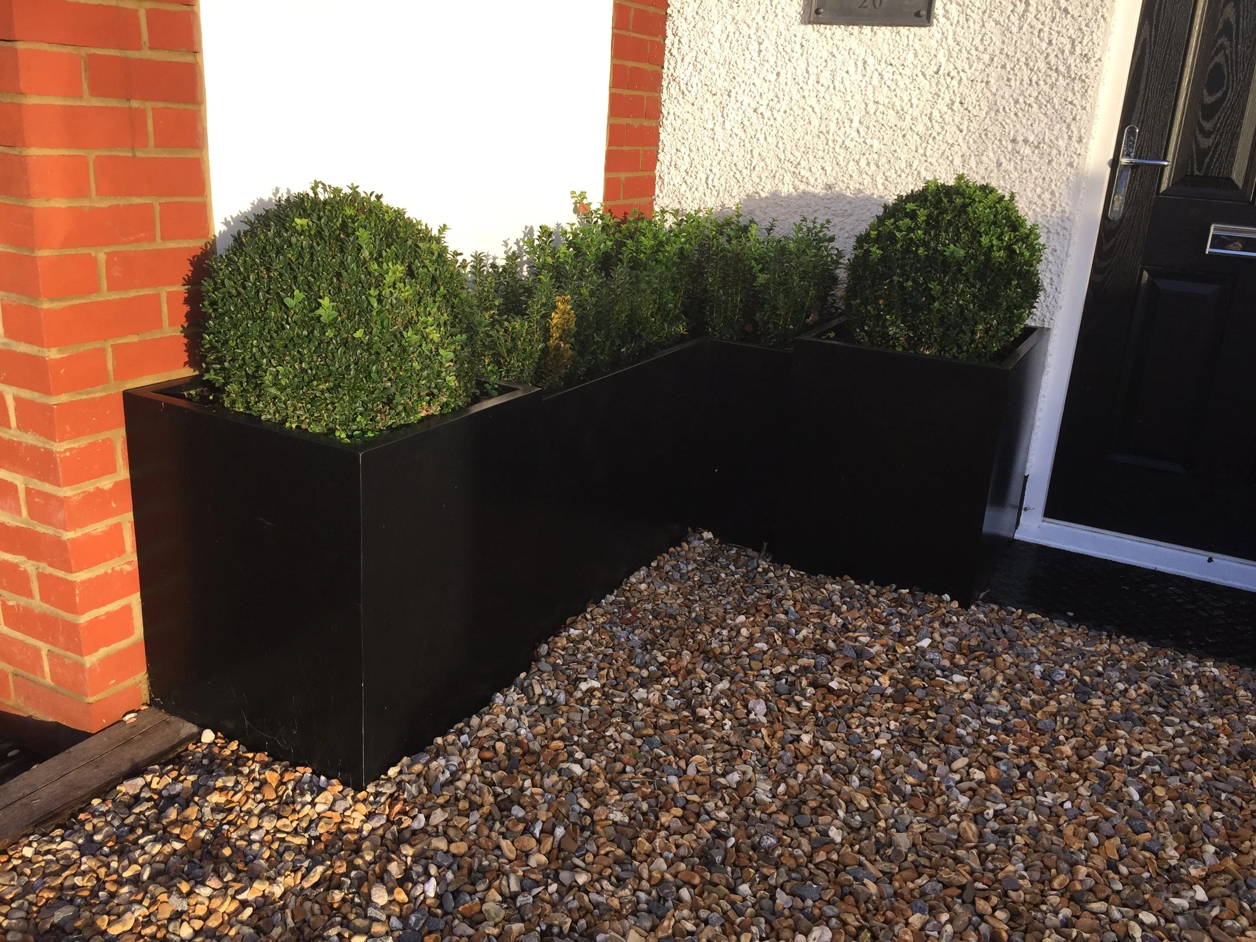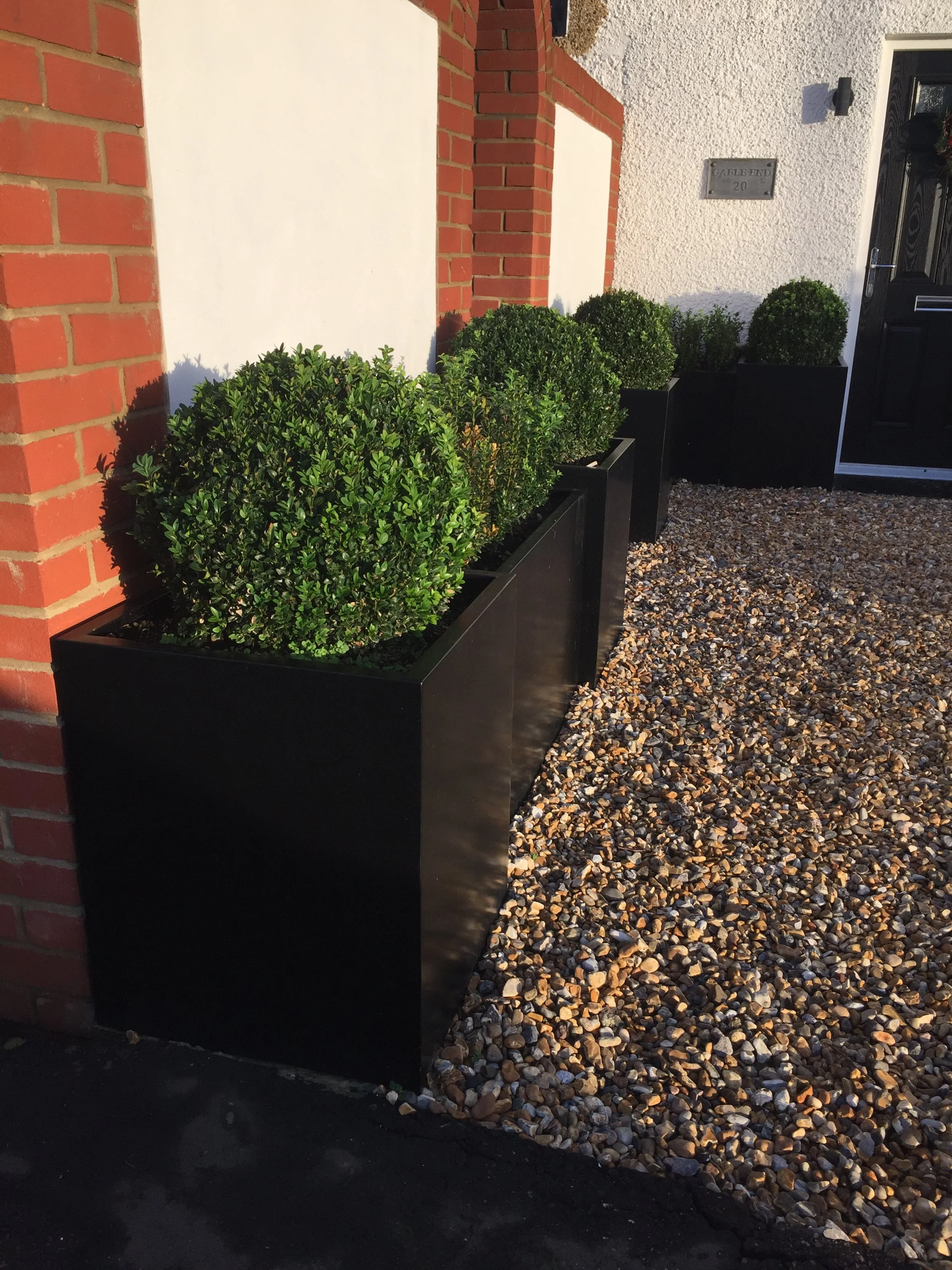 We designed and manufactured these metal planters for a customer’s property in Sussex. Entirely bespoke, they are fabricated in galvanised mild steel braced internally for strength, welded and polished to a smooth, seamless finish, then powder-coated for longevity and minimal maintenance.